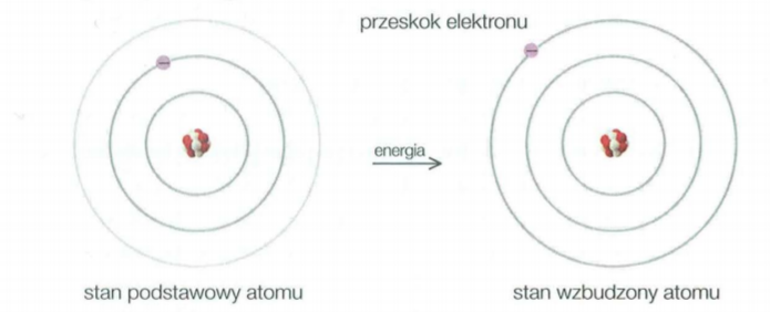 Stan energetyczny elektronu w atomie lub jonie jest opisywany matematycznie przez funkcję falową ψ, zwanym orbitalem atomowym. Gdy podniesiemy tą funkcję do kwadratu otrzymamy prawdopodobieństwo znalezienie elektronu w badanym obszarze wokół jądra atomowego. Orbitale atomowe opisują elektrony zarówno w stanie podstawowym jak i wzbudzonym. Elektron występujący w stanie wzbudzonym posiada wyższą energie niż w stanie podstawowym.